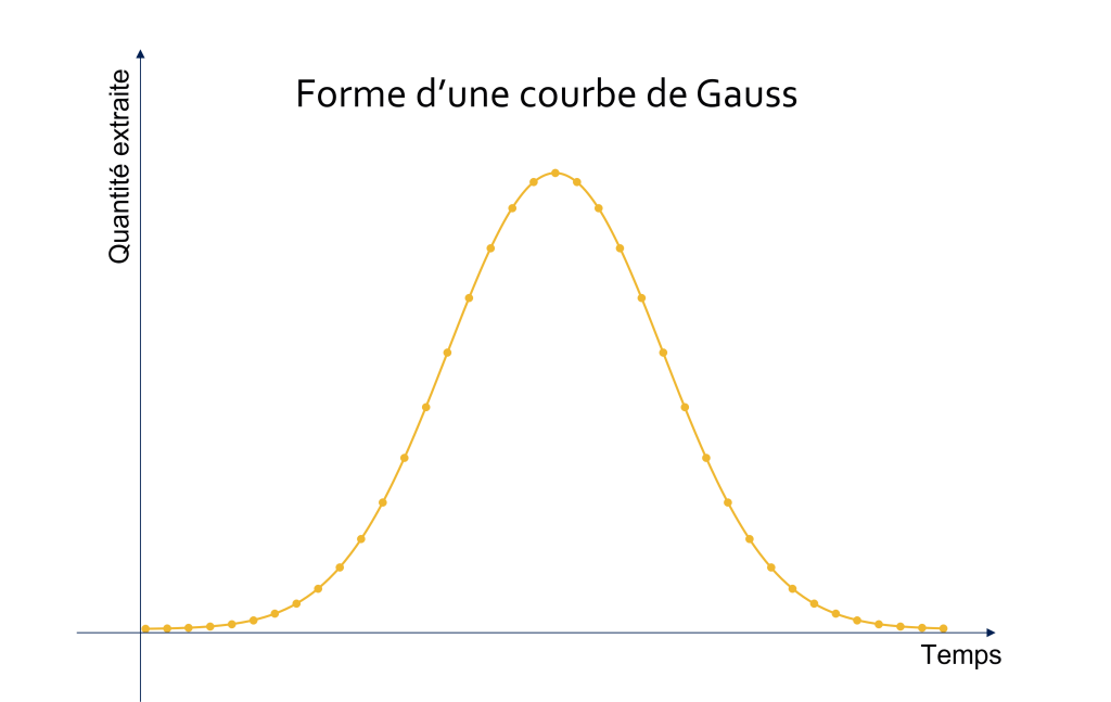 Le pétrole est une matière première fossile. Quelle que soit la matière première fossile, la courbe de son extraction a la forme d’une courbe de Gauss. Cela signifie que la production a en premier lieu une phase de croissance, puis atteindra un pic. Une fois ce pic atteint, peu importe les moyens financiers, matériels ou humains mis en œuvre, la courbe commence à décroitre. C’est une limite physique.